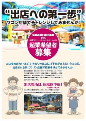 起業希望者を応援する商い創出事業京都市は、開業を目指す起業希望者を応援する商い創出事業として、「新風館」(中京区)に屋台形式のワゴン店舗(1坪弱/店)を4カ月間出店できる支援対象者の募集を、この17日より開始した。