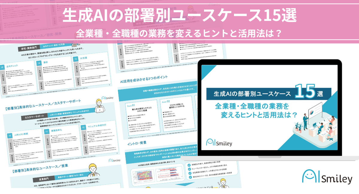 AIポータルメディア「AIsmiley」を運営する株式会社アイスマイリー(東京都渋谷区、代表取締役:板羽 晃司)は、生成AIの具体的な活用法を部署別に解説した資料「生成AIの部署別ユースケース15選 –全業種・全職種の業務を変えるヒントと活用法は?–」を2025年10月15日(水)に公開しました。