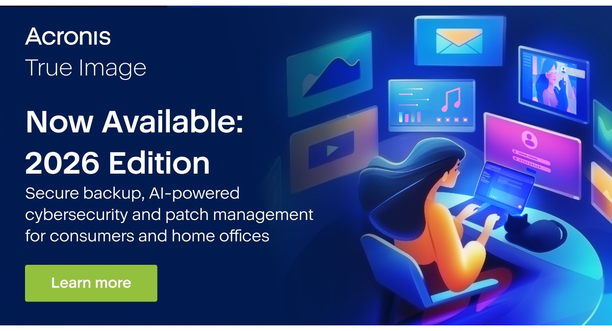 サイバーセキュリティとデータ保護のグローバルリーダーであるAcronisの日本法人であるアクロニス・ジャパン株式会社(本社:東京都港区、代表取締役社長:川崎 哲郎、以下アクロニス)は、本日、個人ユーザー および個人事業主・SOHO 向けの、バックアップとセキュリティ機能が統合された Acronis True Image 2026 の発売開始を発表しました。最新バージョンでは、Windows 向けのパッチ管理が新たに搭載され、AI ベースの脅威検出、ランサムウェア対策、マルウェアスキャンのセキュリティエンジンが強化されています。