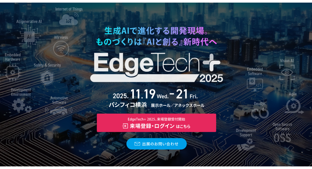 EdgeTech+ 2025は、横浜で開催される日本最大級の組込み・エッジテクノロジー総合展示会です。事業変革期を迎えた今、エッジテクノロジーに新たなプラスで顧客起点の価値創出を実現するイベントとなっております。