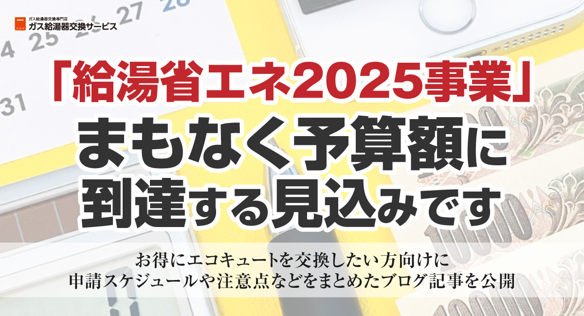 「給湯省エネ2025事業」まもなく予算額に到達する見込みです。お得にエコキュートを交換したい方向けに申請スケジュールや注意点などをまとめたブログ記事を公開