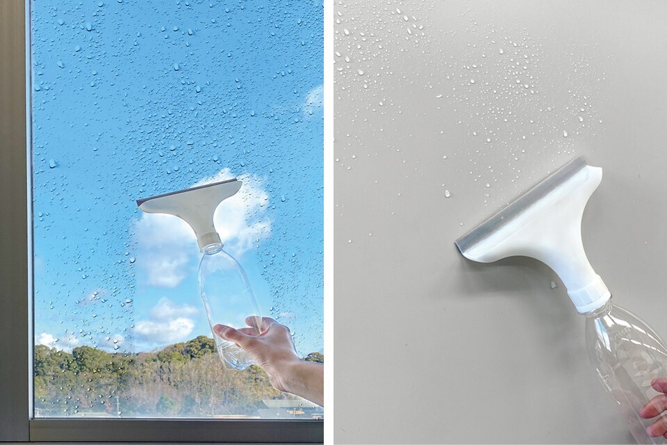 ◎ワイパー部が窓ガラスなどの平らな面と密着するようにペットボトルを持ち、下から上へ動かすと、吸いつくような滑らかさで水滴を簡単に拭き取れます。