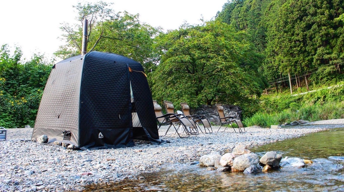 サウナ玄人も唸る本格設備: テント内部では、アロマ水を使ったロウリュが可能。薪の量を調整することで熱量を自在にコントロールでき、コンディション次第では100度近い高温サウナも堪能できます。ととのい用にはインフィニティチェアをご用意。深い呼吸とともに“ととのい”の余韻をじっくり味わえます。