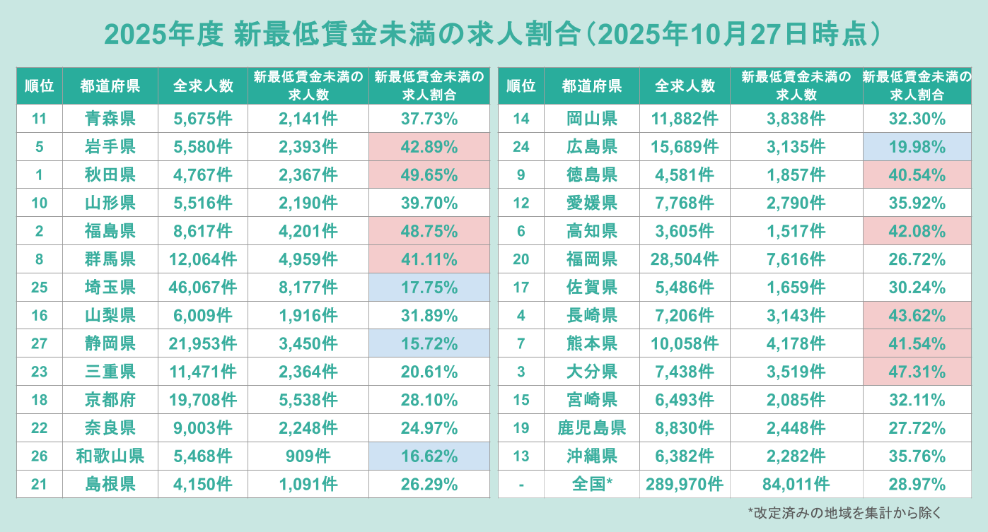 【2025年10月度】都道府県別 新最低賃金未満の求人割合レポート