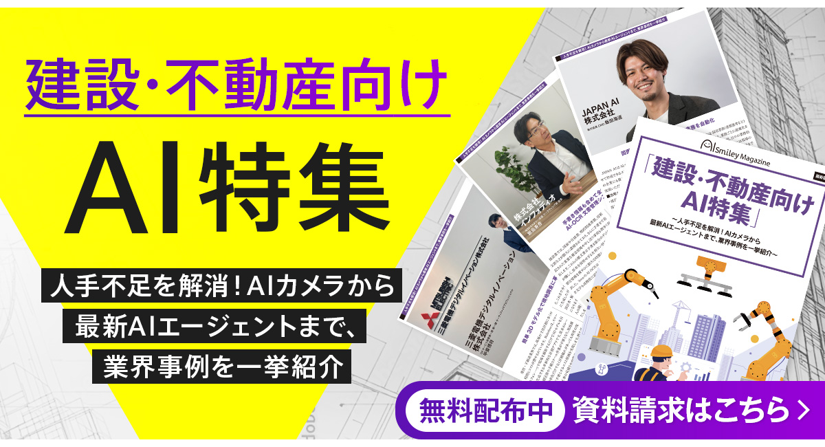AIポータルメディア「AIsmiley」を運営するアイスマイリー(東京都渋谷区、代表取締役:板羽晃司)は、「建設・不動産向けAI特集号マガジン」を公開しました。AI活用最前線をご紹介いたします。