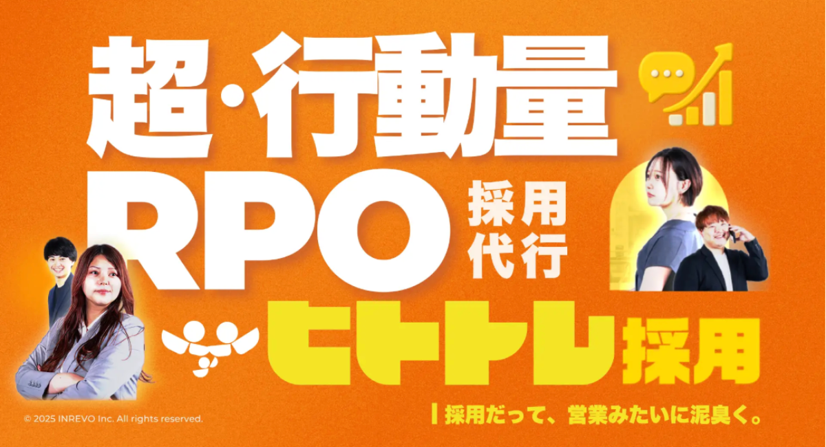 「ヒトトレ採用」は、株式会社INREVOが提供する業界初(※)の成果保証型RPO(採用代行)です。採用が成立しなかった場合は全額返金とする料金体系を採用し、まず“試しやすい”ことにこだわっています。あわせて、月額10万円からのライトコンサルも用意し、「まず小さく始めたい」「ノウハウを社内に残したい」という企業の最初の一歩を支援します。