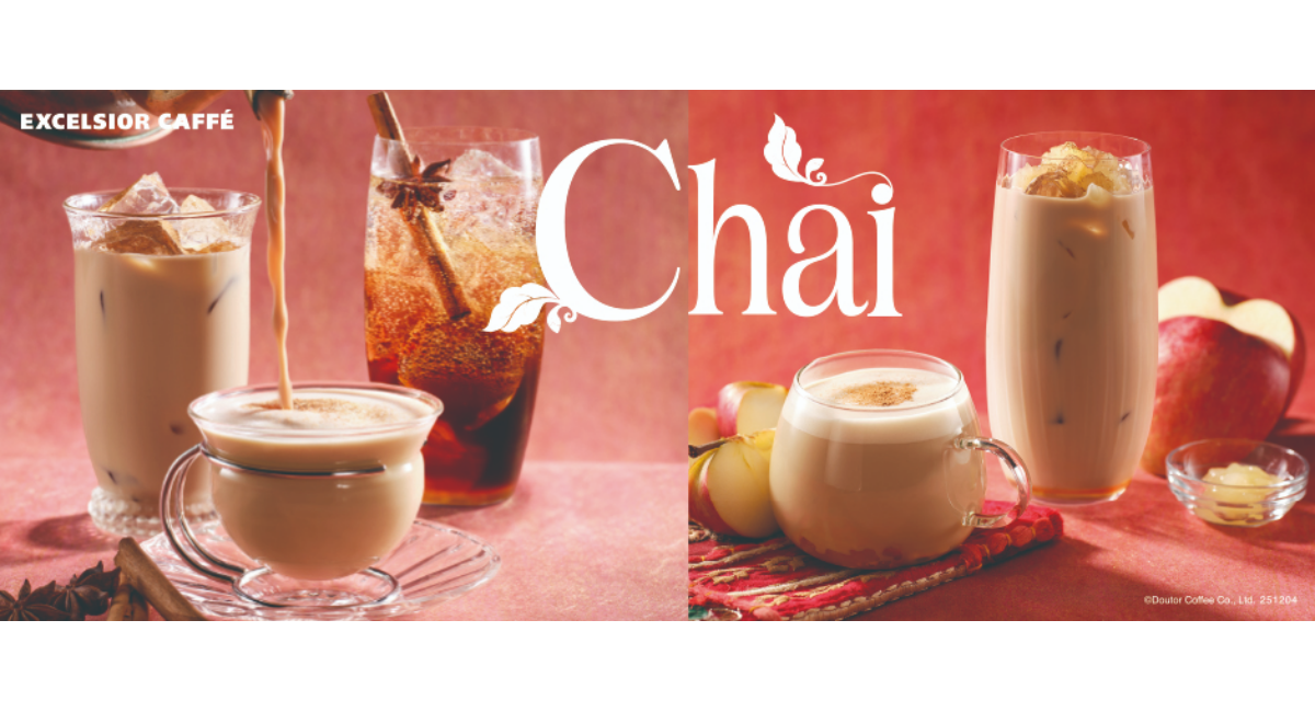株式会社ドトールコーヒー(本社:東京都渋谷区/代表取締役社長:星野 正則)は、エクセルシオール カフェにおいて、2025年12月4日(木)に冬のおすすめ新メニューを発売します。 エクセルシオール カフェオリジナルの茶葉を使った「マサラチャイティー」「豆乳マサラチャイティー」が新登場。さらに、アレンジメニュー「アップルマサラチャイティー」と「マサラティーソーダ」も発売します。 また、新作フードメニューは、贅沢感のある食材を使用した「鴨と九条ねぎの豆乳クリームパスタ」や「蟹とトマトのチーズドリア」、彩り鮮やかな「チャバッタサンド グリルチキン&カポナータソース」を、新作スイーツとして、ケーキの新しい食べ方をご提案する「杏のフロマージュタルト~ピンクソルトを添えて~」を発売します。冬のひとときを、エクセルシオール カフェのおすすめメニューとともにお過ごしください。