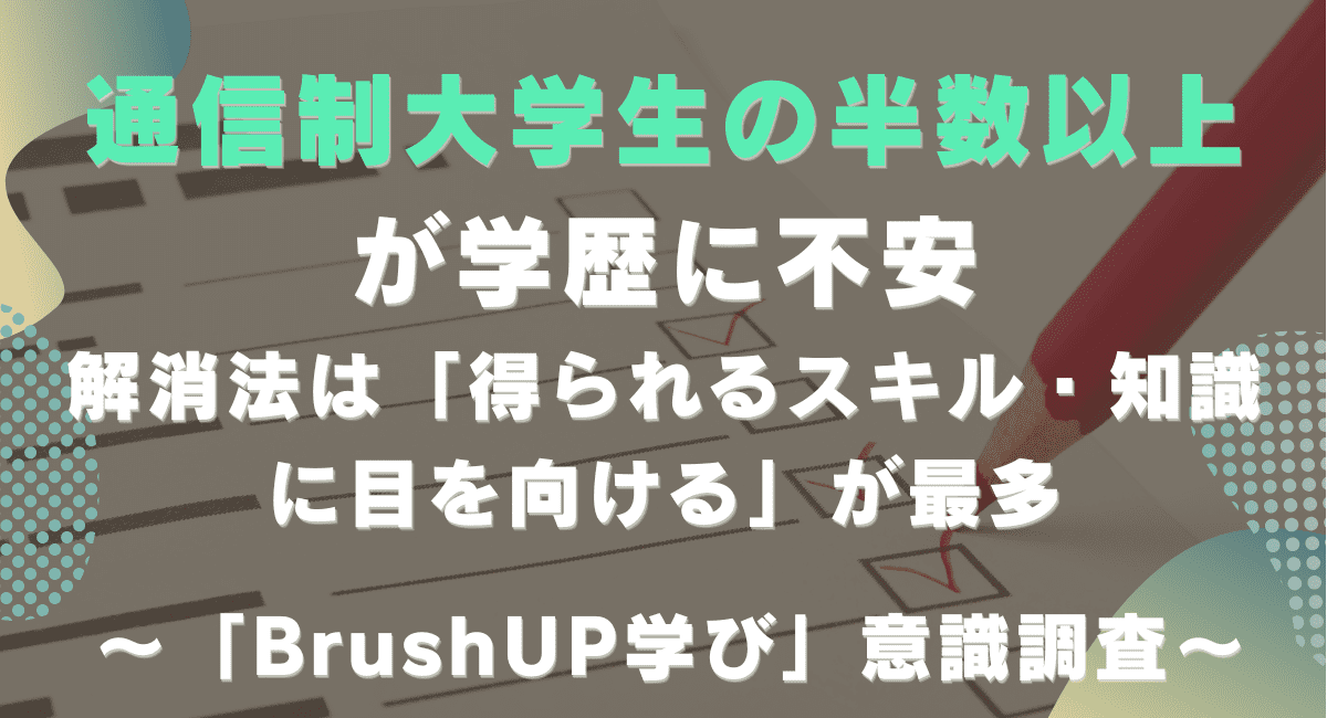 https://www.brush-up.jp/ )」を運営する株式会社パセリ(パセリホールディングスグループ 東京都千代田区/代表取締役 鈴木悠祠郞)は、通信制大学に在籍経験がある人を対象にアンケート調査(調査期間:2025年10月10日~2025年10月17日)を実施しました。学歴や就職に関する不安をどう乗り越えたか、通信制大学を選んで良かったことなど、幅広い質問にご回答いただきました。調査結果を公表します。※2025年3月期_資格・講座のポータルサイトにおける市場調査/調査機関:日本マーケティングリサーチ機構