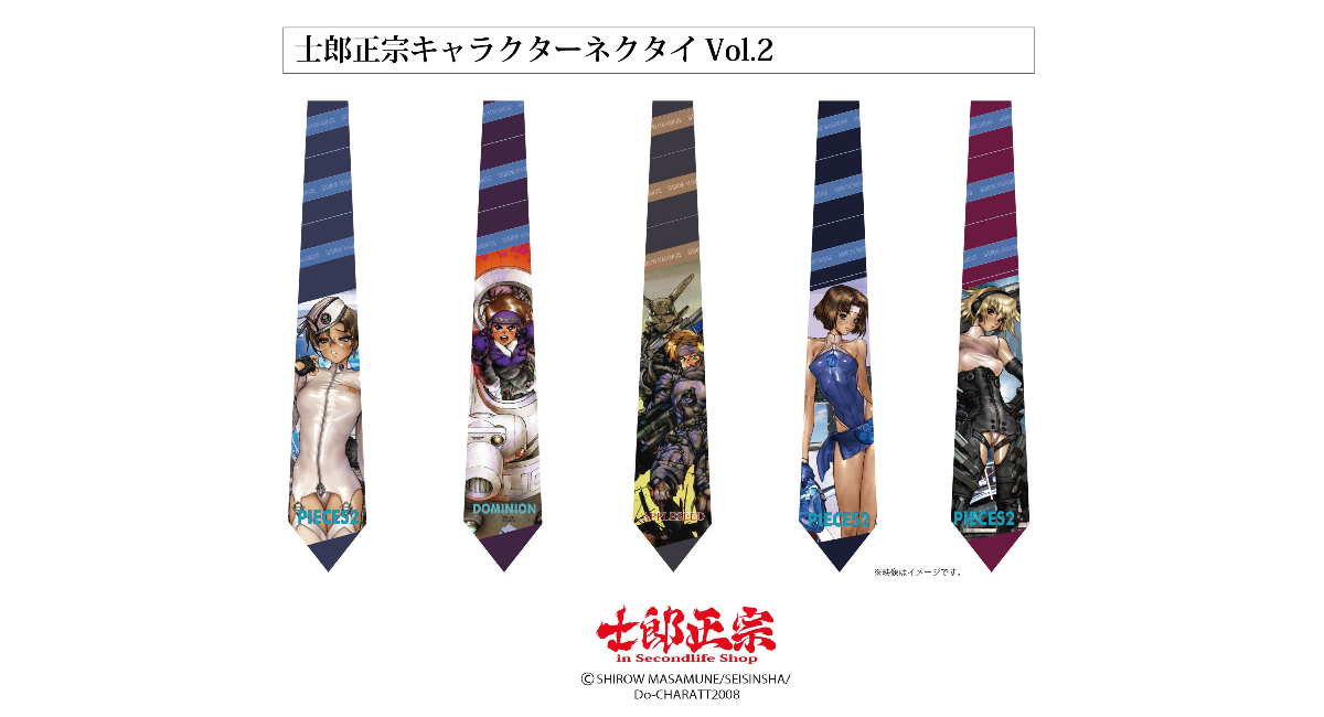 「士郎正宗inセカンドライフショップ」は、士郎正宗、漫画家メジャーデビュー40周年&ショップ17周年記念 士郎正宗キャラクターネクタイVol.2を販売。