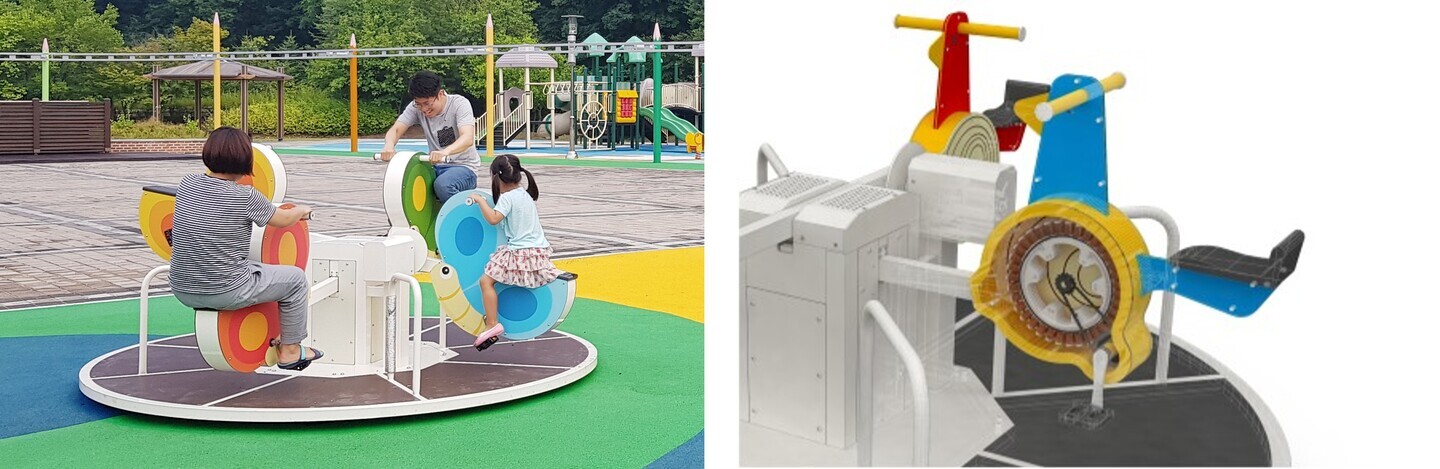 今回ご紹介する「自家発電遊具」は発電機を内蔵した遊具で、利用者が遊びながら発電したエネルギーによって動作・発光します。運動や遊びを通じて電気エネルギーの仕組みを学び、創造力を高めながら環境問題やエネルギーの大切さを学ぶきっかけを生み出す、公園の新しい楽しみを提供します。