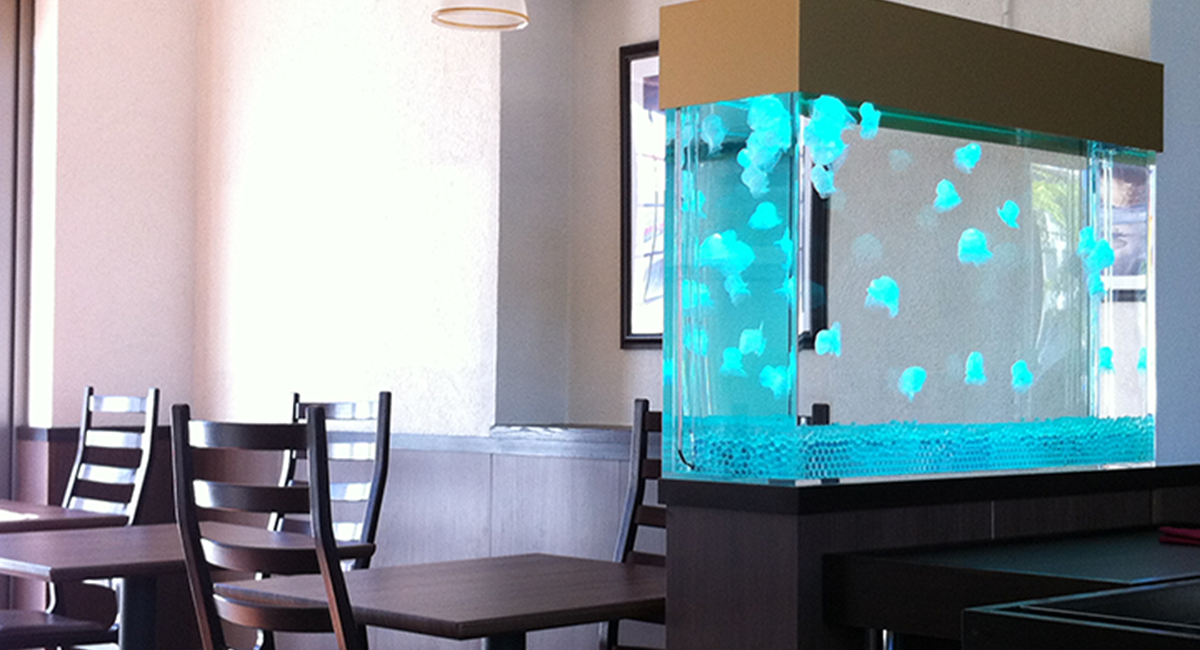 2000年の発表以来、NHK「おはよう日本」や全国紙の1面で紹介。人工筋肉技術を応用した特殊樹脂により、生きたクラゲのような“ゆらぎ”を再現し、安心感や居心地の良さを演出します。設置後は水質管理不要、メンテナンス完全サポートで手間なく運用できます。