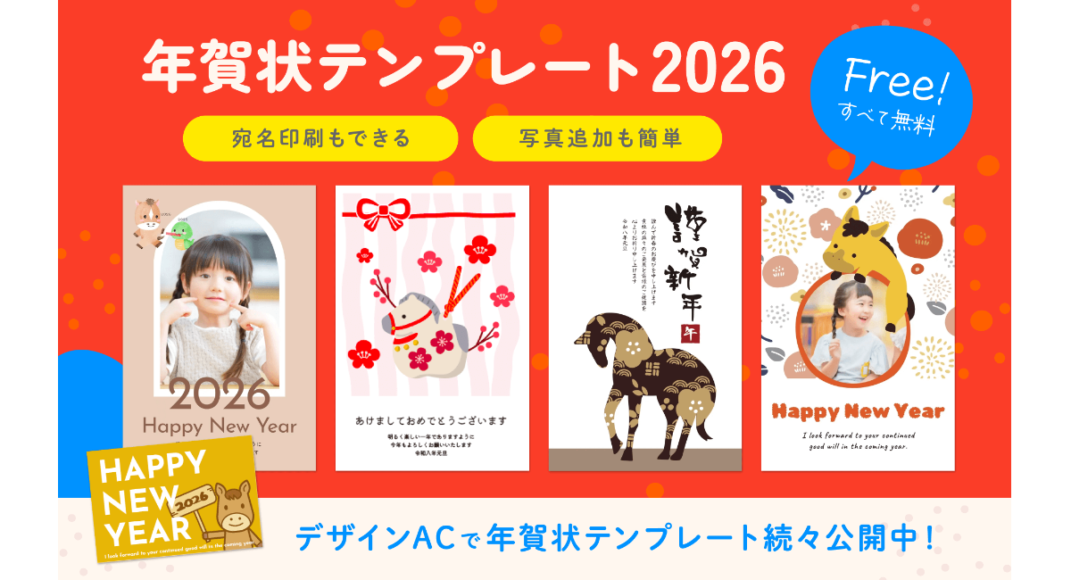 【無料】年賀状テンプレート約3,000点を公開中!―写真入りデザイン・宛名印刷も「デザインAC」で簡単作成―