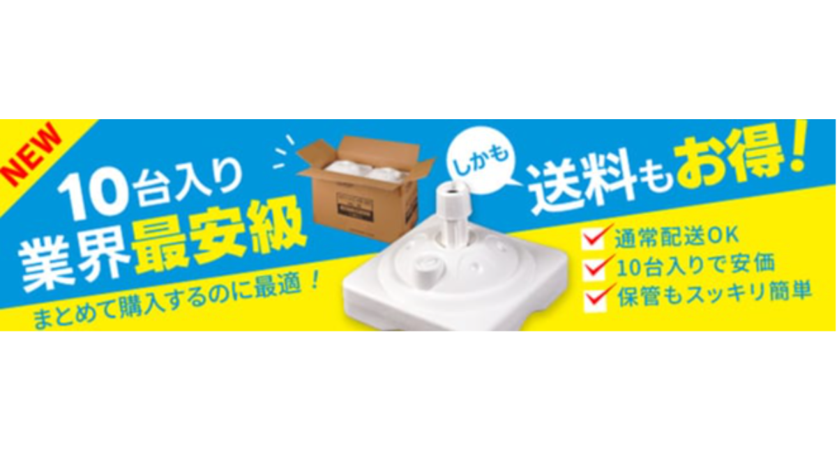 この小型化により、まとめ買い時の送料負担を大幅に軽減。のぼり旗を扱う企業・代理店・印刷業者にとって、配送コスト削減と在庫スペースの向上を同時に叶える“新世代の注水台”が誕生しました。