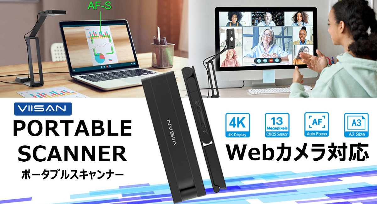 世界のデジタル化を支え続けるVIISANから、ウェブ会議、プレゼン、資料整理まで、デスクワークを効率化する多機能スキャナー「VIISAN Portable VS13AM」登場!