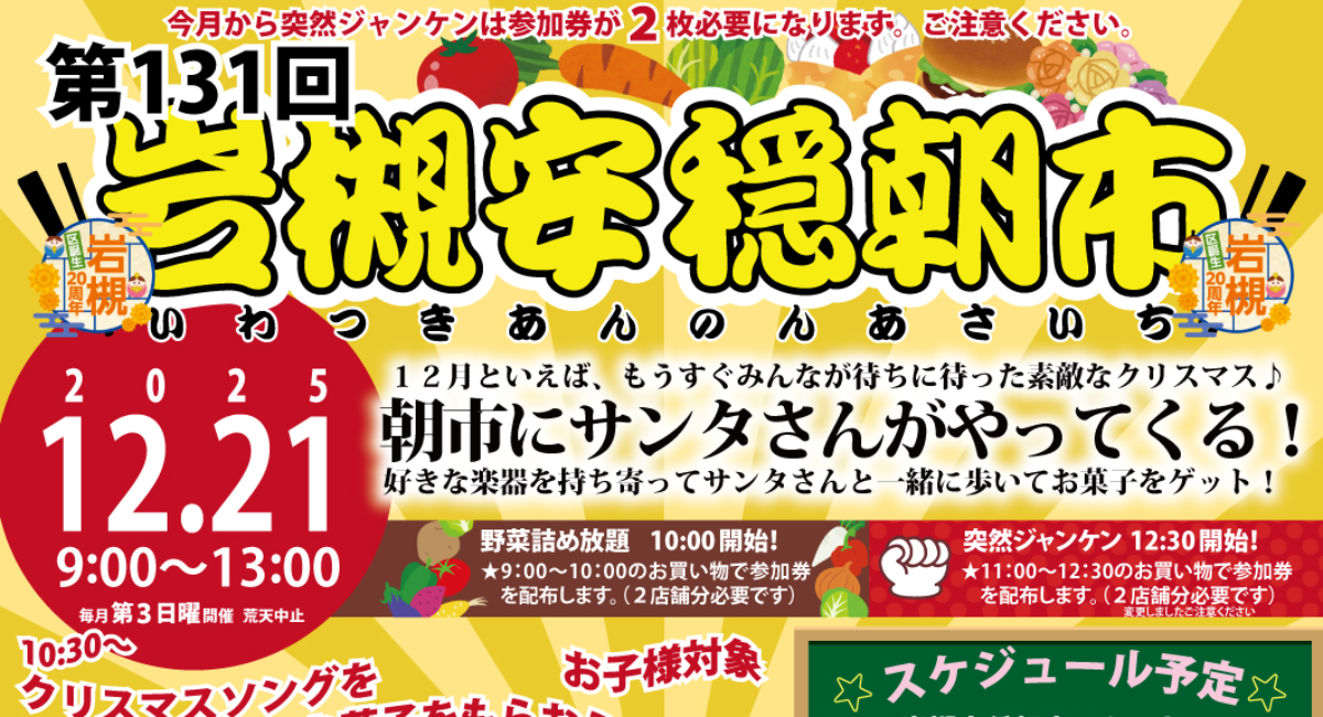 【12/21】第131回岩槻安穏朝市〜朝市にサンタさんがやってくる!〜