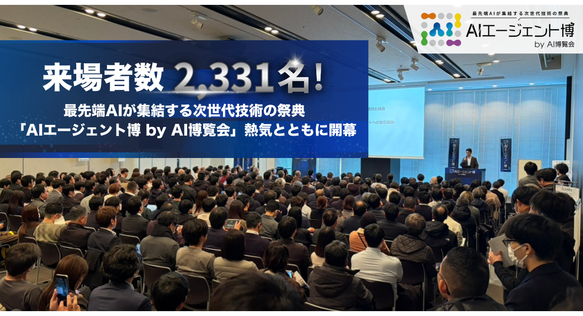 国内最大級のAIポータルメディア「AIsmiley」を運営する株式会社アイスマイリー(東京都渋谷区、代表取締役:板羽 晃司)は、2025年12月11日(木)、御茶ノ水ソラシティカンファレンスセンター2Fにて、最先端AIが集結する次世代技術の祭典「AIエージェント博 by AI博覧会」を開催しました。初日の来場者数は2,331名を記録し、生成AIの次にくるトレンドとして注目される「AIエージェント」の実装とビジネス活用への期待感から、開場直後より多くのビジネスパーソンが詰めかけ、会場は熱気に包まれました。