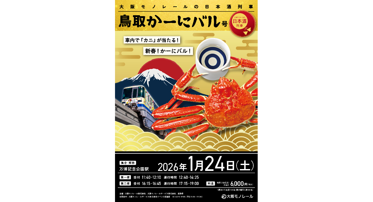 2026年1月24日(土)に大阪モノレールの日本酒列車 鳥取かーにバル号を運行します。