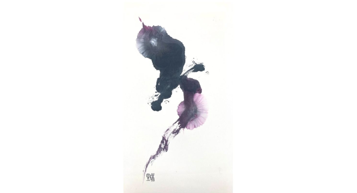 本展では「本来のわたしへ還る旅」というテーマのもと、内なる宇宙から届くインスピレーションを墨で表現しています。作品づくりでは、墨の濃淡や余白にこだわり、それぞれの線や形に心の在り方を映し出しました。墨は私にとって感情の言葉であり、自分自身と向き合うための手掛かりであると考えています。