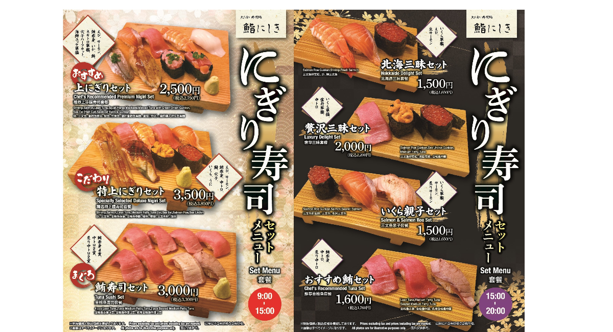 時間帯別に楽しめるにぎり寿司セットメニューの販売を開始いたします。