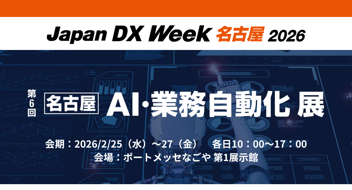 AIポータルメディア「AIsmiley」を運営するアイスマイリー(東京都渋谷区、代表取締役:板羽晃司)は、2026年2月25日(水)~2月27日(金)に ポートメッセなごやにて開催のJapan DX Week【名古屋】 / AI・業務自動化 展にブースを出展します。