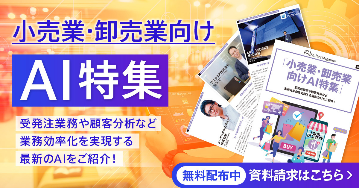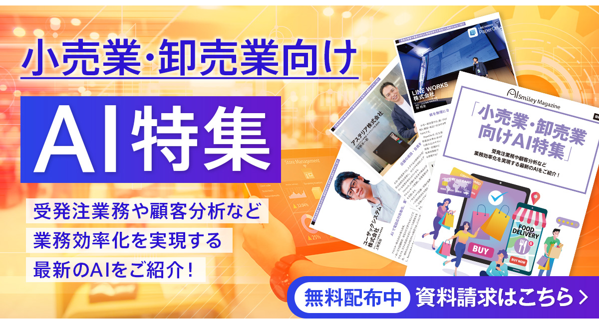 国内最大級のAIポータルメディア「AIsmiley」を運営する株式会社アイスマイリー(東京都渋谷区、代表取締役:板羽晃司)は、WEB雑誌「小売業・卸売業向けAI特集」を公開しました。