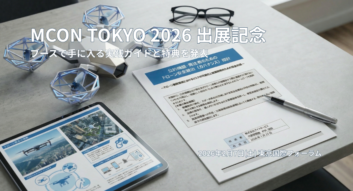 今回進呈する「ドローン安全統治指針」は、発注者が組織として安全を担保し、万が⼀の際に説明責任を果たせる体制を、実務ベースで構築するためのツールです。MCON TOKYO 2026 では、この指針を通じて、災害対応を⾒据えた組織防衛のあり⽅を共有したいと考えています。