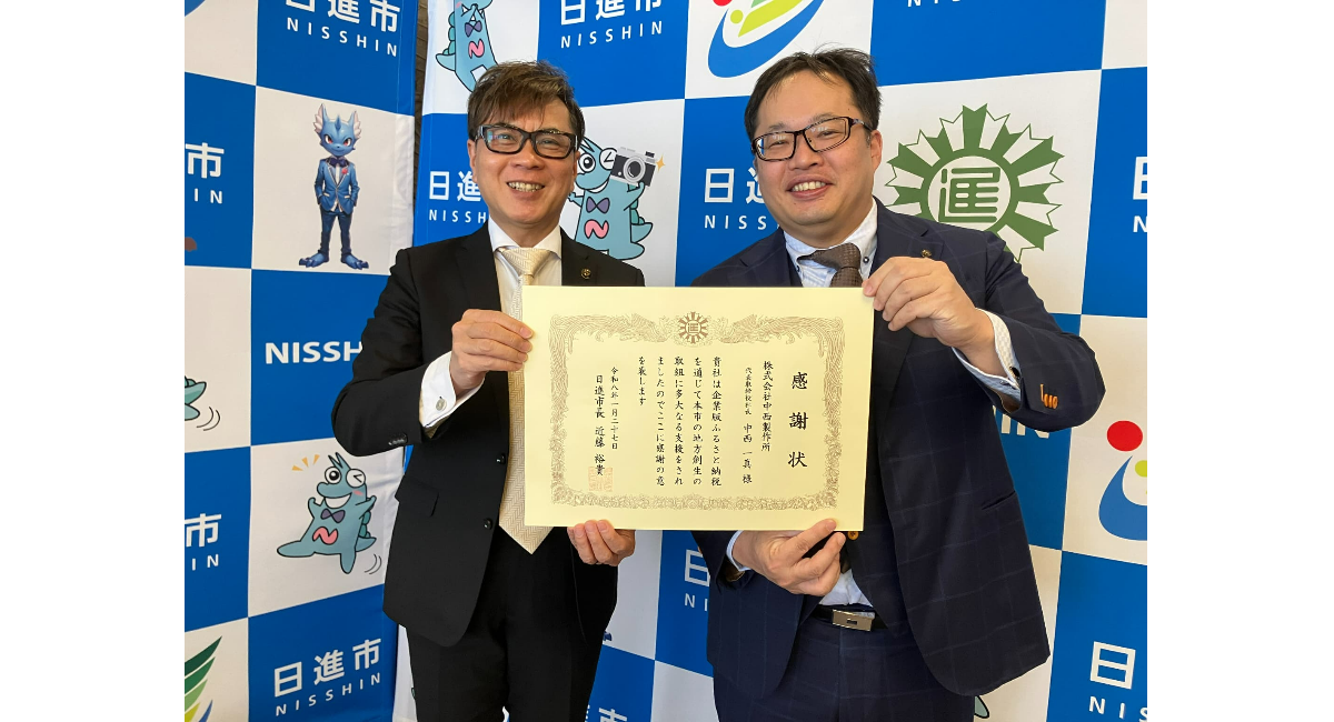 株式会社中西製作所(東証スタンダード:5941、本社:大阪市生野区、代表取締役社長:中西一真)は、愛知県日進市が推進する「第2期日進市人口ビジョン・まち・ひと・しごと創生総合戦略」(一人ひとりが光り輝く教育環境の整備)に対して地方創生応援税制(企業版ふるさと納税)を行いました。