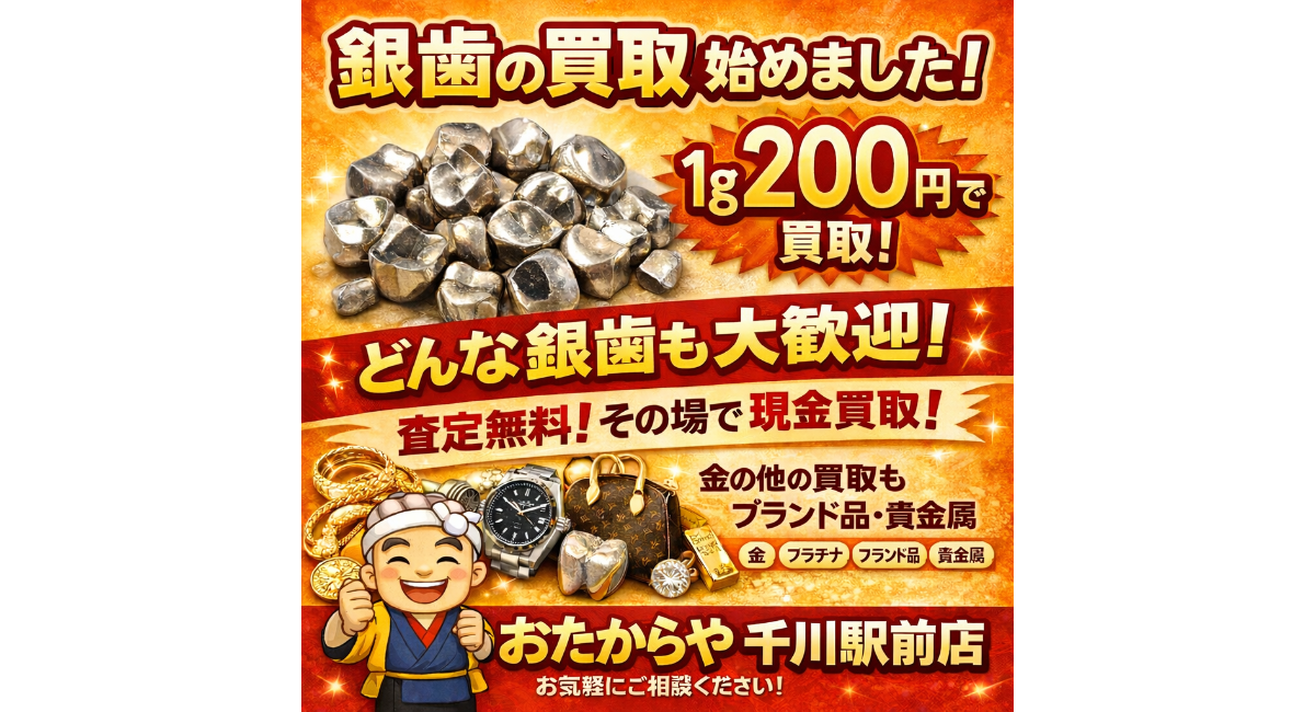 おたからや千川駅前店では、このたび新たに**「銀歯の買い取りサービス」**を開始いたしました。