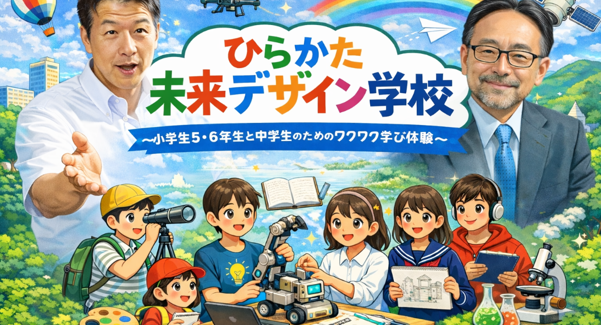 社員教育やオンライン展示会を運営する株式会社ミスピー(本社:枚方市、代表取締役:白井幹人)は枚方市内の小学生5、6年生および中学生を対象とした学びの機会として、「枚方の未来を考える学校」を2026年2月21日に開催します。本イベントは、参加者のたち供達が自らの暮らす枚方市について理解を深め、将来のまちの姿を主体的に考えることを目的とした教育的取り組みです。当日はNHKでお馴染みの藻谷浩介氏講師別先生に迎え、「ひらかたの街タイムトラベルwith伏見たかし市長」と題して、面白おかしく枚方の歴史を紐解きながらたち子供達と伏見たかし市長が枚方市の未来について語り合うイベントです。対話や意見交換を通じ、思考力・表現力の育成および地域への関心を高める内容として実施いたします。なお、本事業は枚方市および枚方市教育委員会の後援を受けて実施し、参加費は無料となっております。
