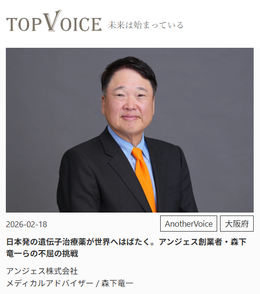 企業紹介サイトTopVoiceに企業紹介記事を追加しました(アンジェス株式会社)