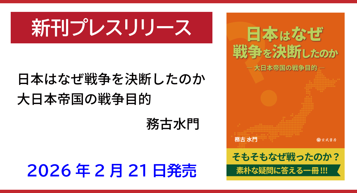 この度、玄武書房は、新刊「日本はなぜ戦争を決断したのか―大日本帝国の戦争目的」を2月21日に発売しました。日中戦争および日米戦争について、当時各国が掲げた戦争目的と、その後に確定した歴史的結果との関係を整理した一冊です。善悪の印象論ではなく、戦争を継続した目的とその正誤に焦点を当てることで、近現代日本史を考える手がかりとなる内容です。『日本はなぜ戦争を決断したのか―大日本帝国の戦争目的』