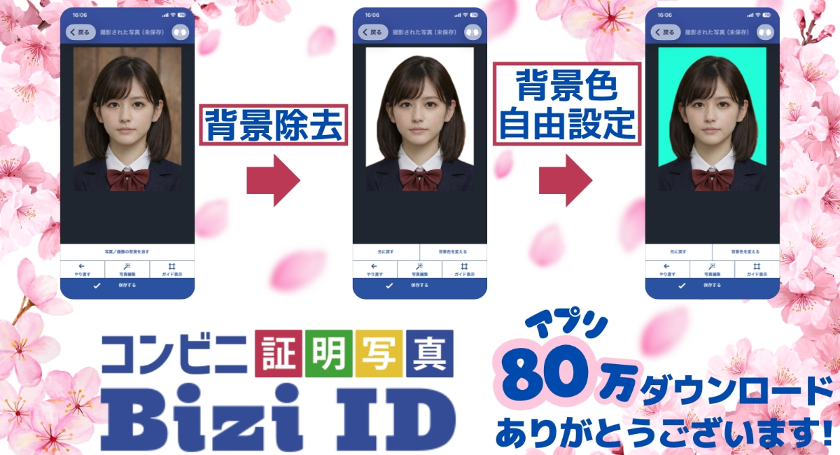 コンビニ証明写真「BiziID」アプリダウンロード数80万突破!背景除去機能&背景色設定機能搭載!