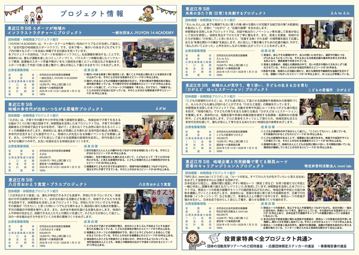 休眠預金活用事業に、初めてSIBのしくみを取り入れた東近江市版SIB(休眠預金活用事業)が調達金額100万円突破!(募集締切:2026年4月13日まで)