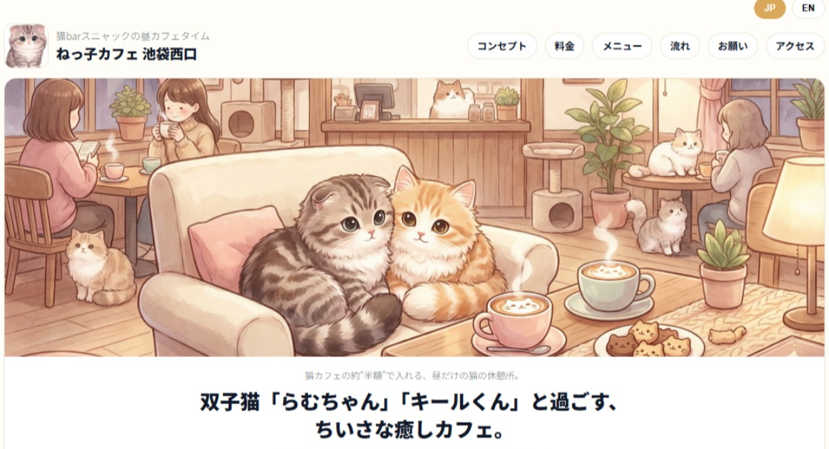 観光の合間、仕事帰り前の休憩、ひとり時間、デート、猫好き同士の交流など、さまざまなシーンで利用できる“池袋西口の小さな癒しスポット”として展開してまいります。