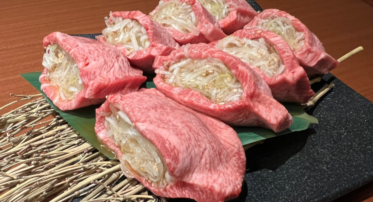 【累計販売数12万枚突破】SNSで話題の進化系牛ネギタン塩「厚切り生タン塩ネギ包み焼き」 | 焼肉ホルモン 山水縁 虎ノ門本店