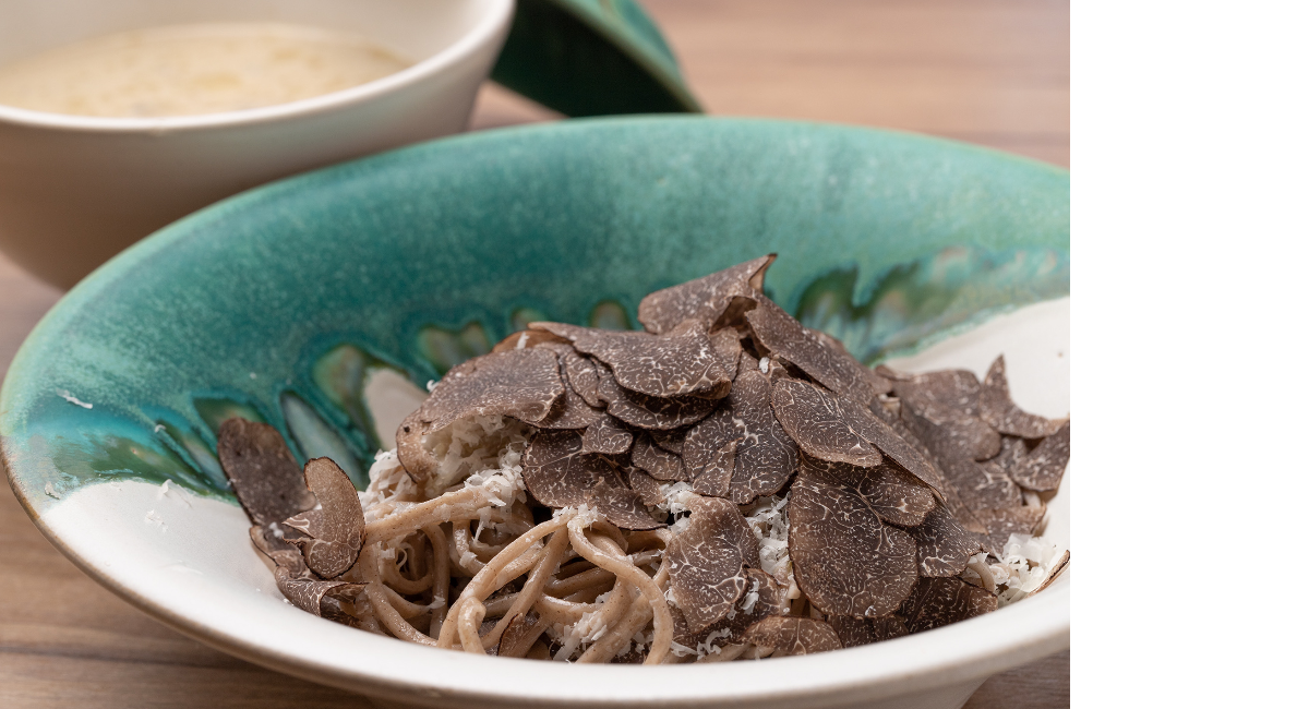 「トリュフ香る・キノコと豆乳のポルチーニ イタソバ」を紹介して頂きました。