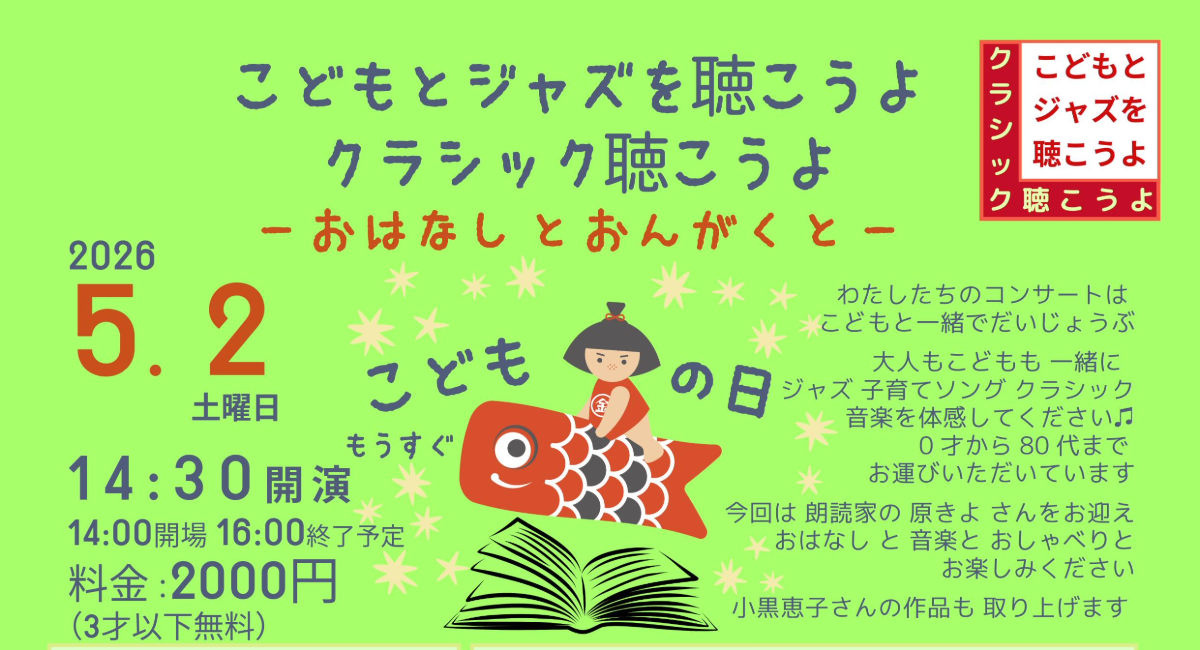 詳細: https://kodomotojazz.jimdofree.com/kodomo-to-jazz-classic/